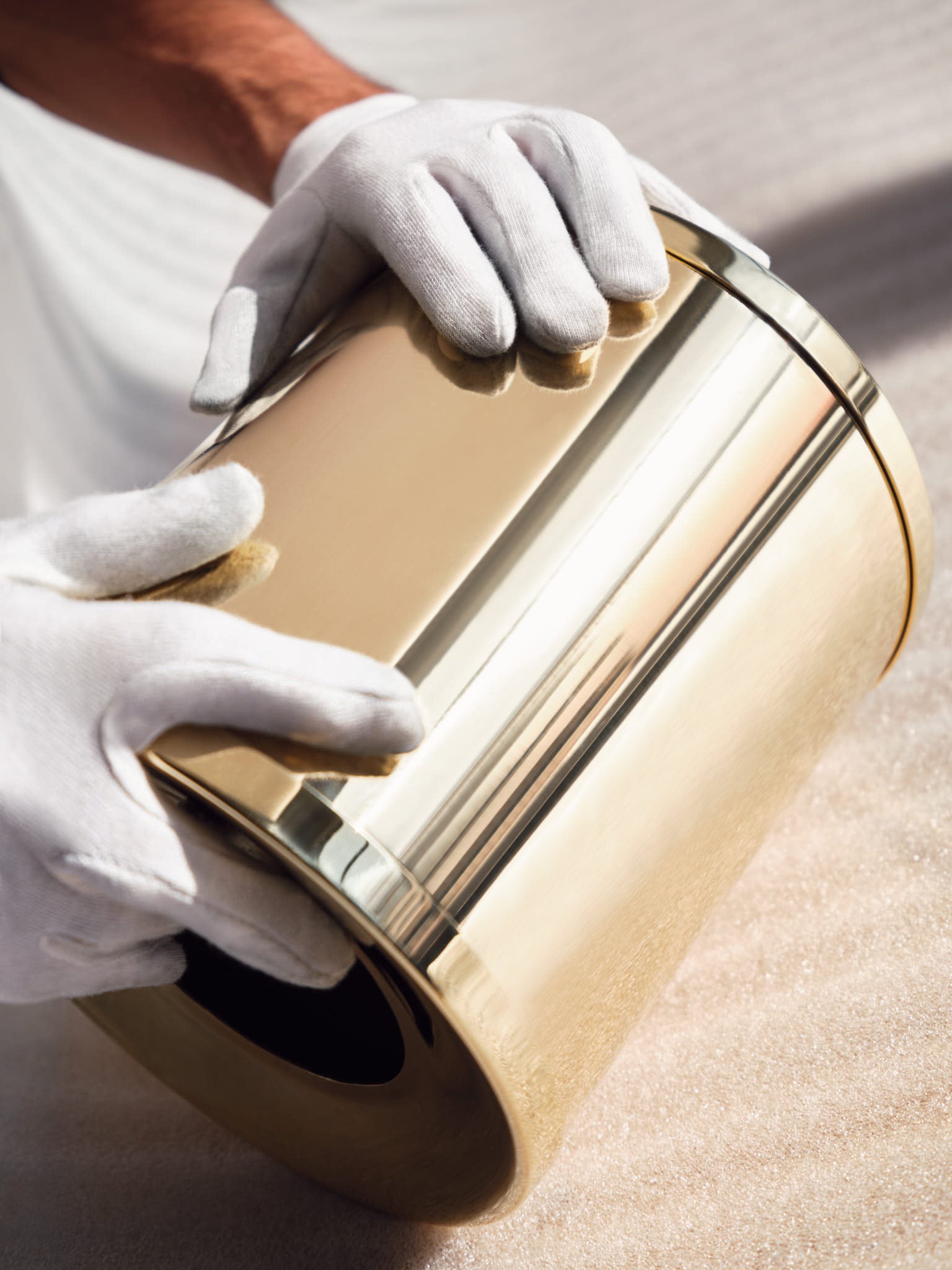 With the exception of Chrome, Gold and Nickel which are stable surfaces, all bespoke finishes applied to Senese products are unvarnished and considered living and will slightly age, patina, and develop individual appearances as they are exposed to time, environment, and usage. The ageing process advance at different speed depending on the exposure of heat, water and frequency of handling.